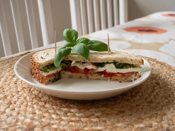 6. Laita toiset leipäviipaleet tomaattileipästen kanneksi