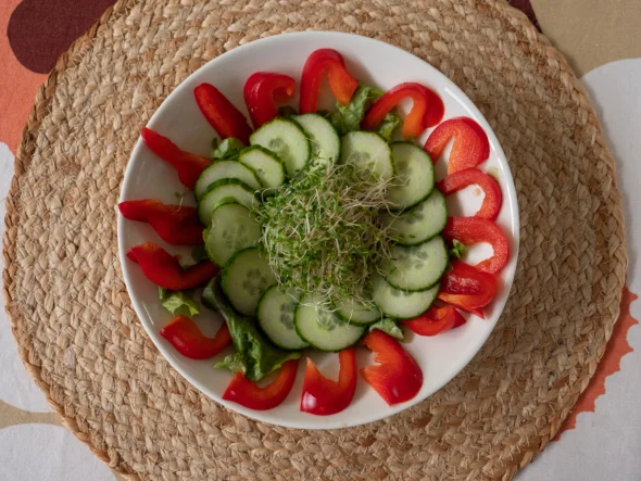 3. Suikaloi paprika ja asettele se myös salaattiannokseesi
