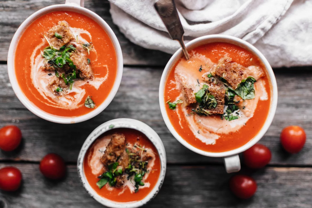 Lämmittävä tomaattikeitto yrttikrutongeilla