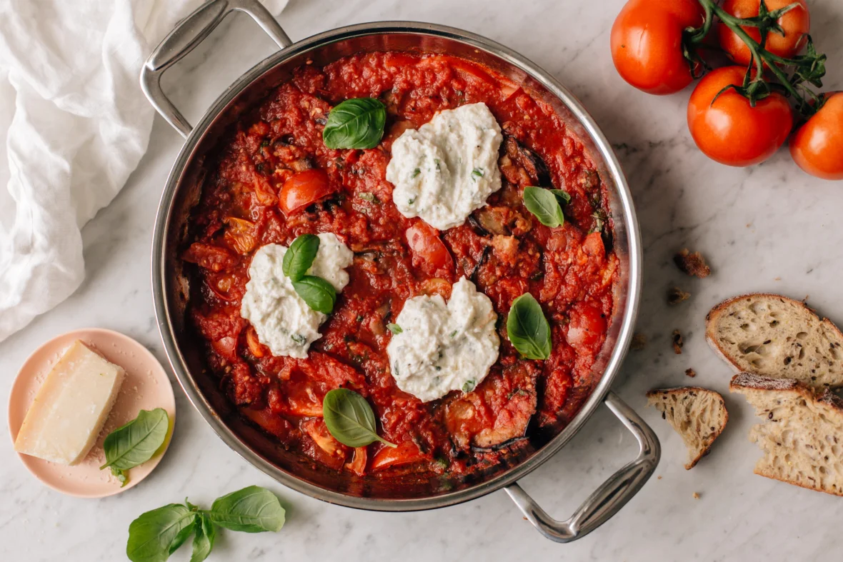 Italiakaisesta keittiöstä inspiraationsa saava melanzane valmistetaan nyt suomalaiseen tapaan. Mehevän maukas paistos valmistuu helposti ja nopeasti puolessa tunnissa! Uunin sijaan ruokalaji kypsennetään isossa paistinpannussa – se hautuu kannen alla kuin itsestään.