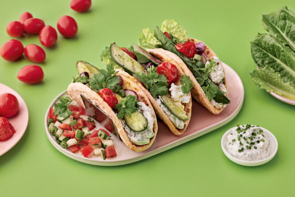 Alkupalaksi rapsakka tajin-kurkkusalaatti ja vihannestacot