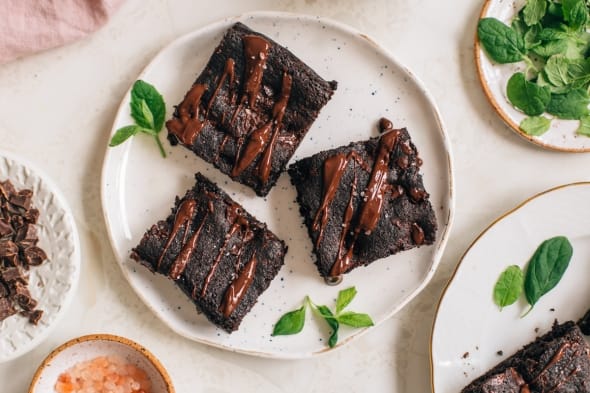 Täyteläiset suklaabrowniet päättävät aterian. Mintun ja suklaan makupari on täydellinen, ja pääsee oikeuksiinsa tässä annoksessa. Moderni vaihtoehto mämmille! Resepti löytyy täältä.