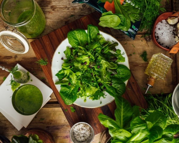 Runsas ja lehtevä salaattipohja syntyy yhdistelemällä eri salaattityyppejä. Erilaiset värit ja tekstuurit nostavat salaatin arjen yläpuolelle. Kiinnitä huomiota myös kauniiseen asetteluun. Mukaan voi lisätä myös monipuolisesti yrttejä omaksi osiokseen.